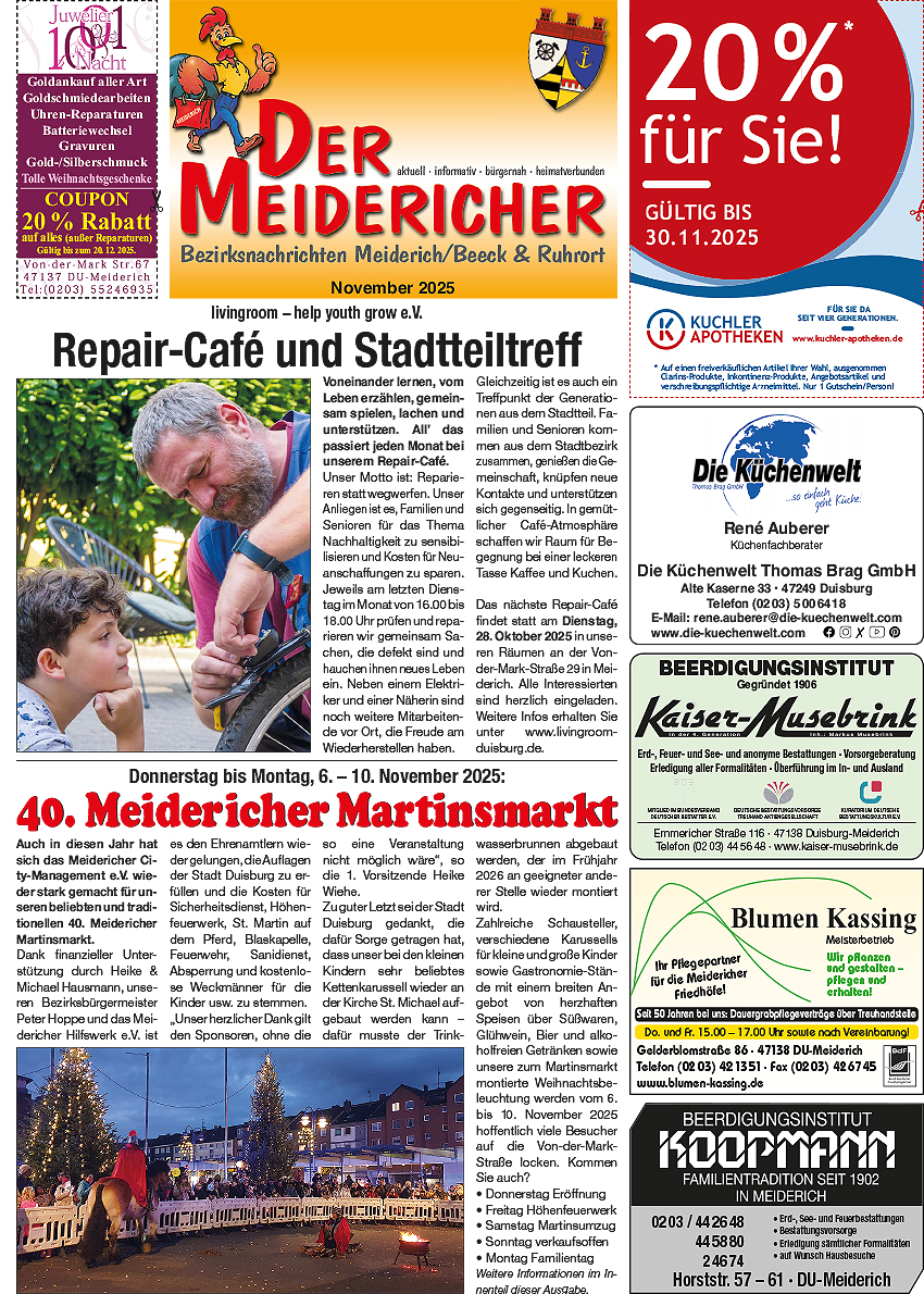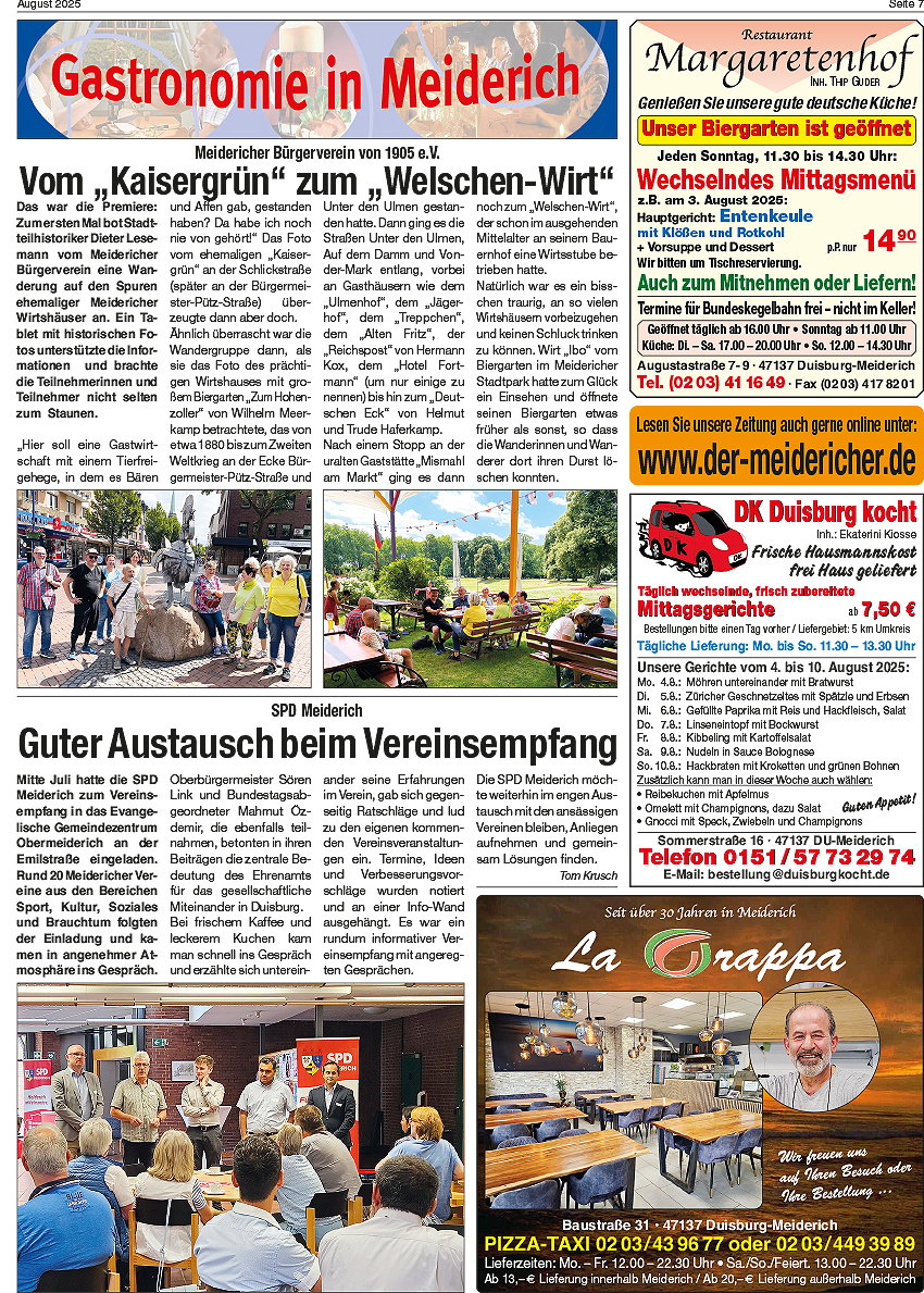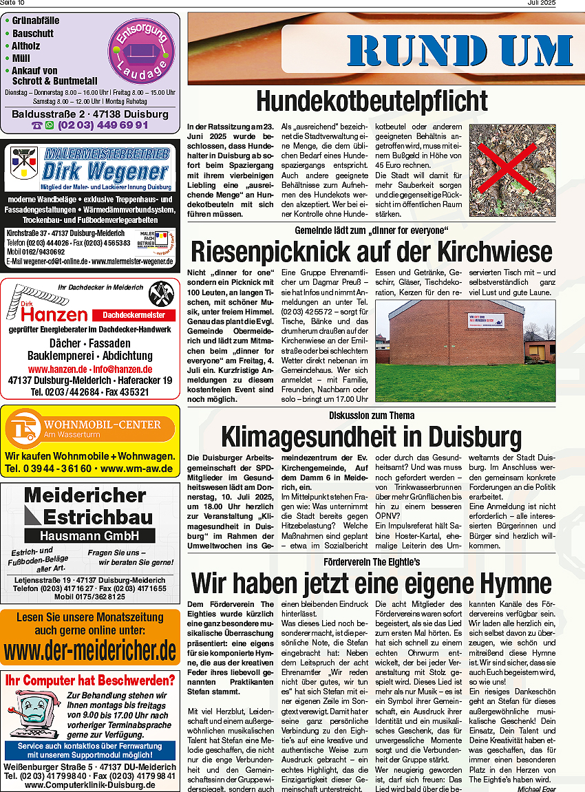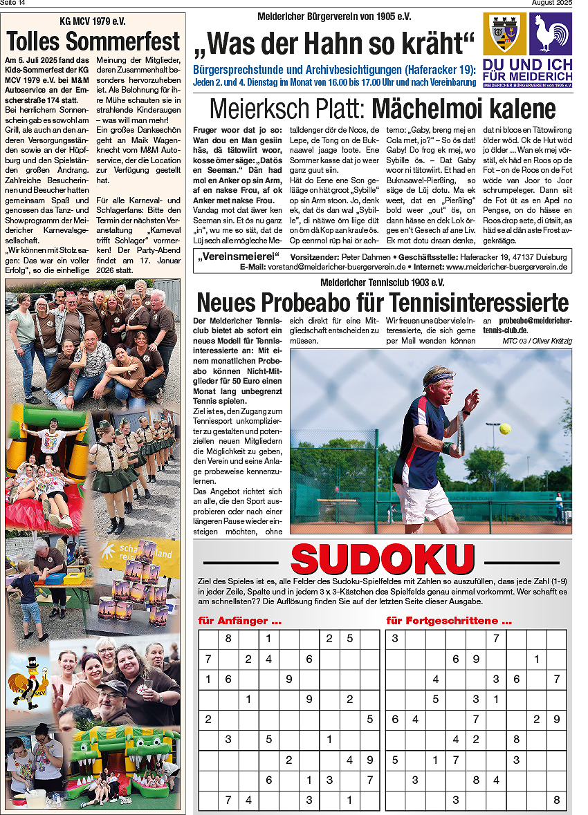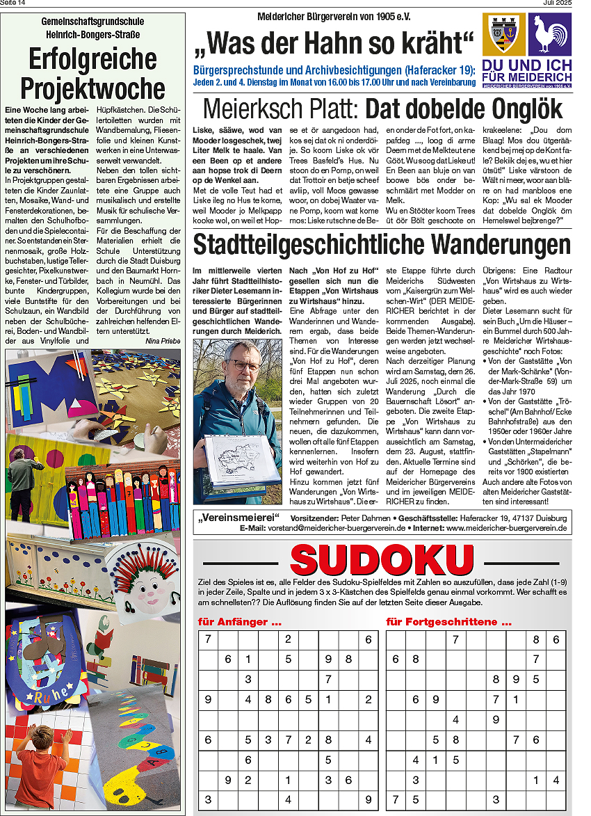 Hier jetzt auch wieder online - die aktuelle Ausgabe unserer Monatszeitung DER MEIDERICHER mit vielen Informationen, Berichten, Neuigkeiten und Nachrichten aus unserem Bezirk sowie aktuellen Angeboten unserer Geschäftsleute ... viel Spaß beim Lesen!