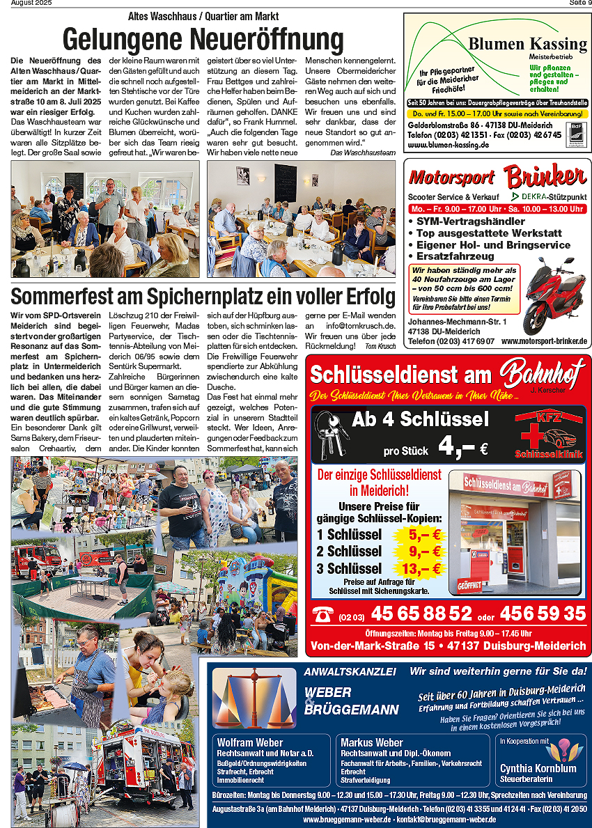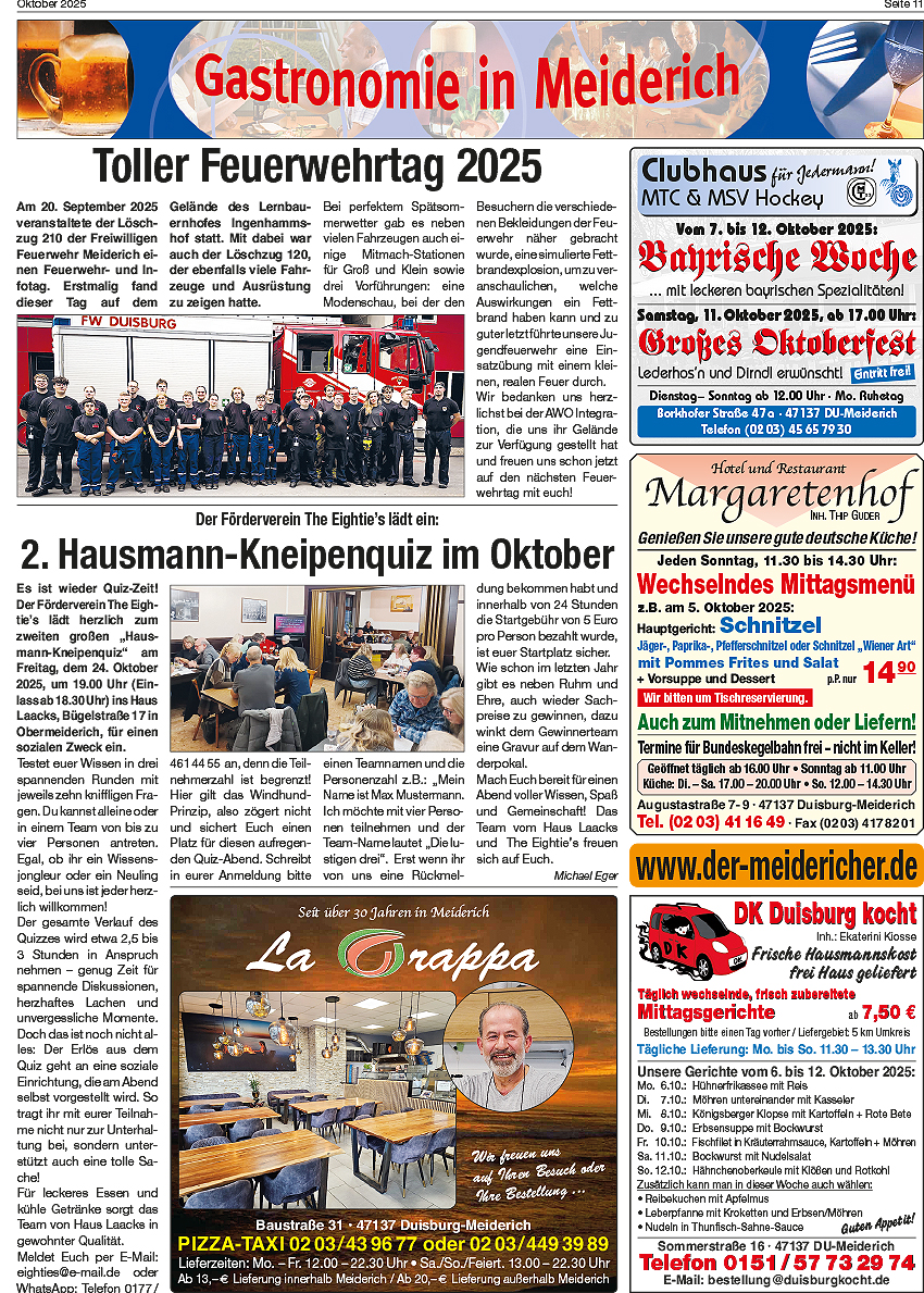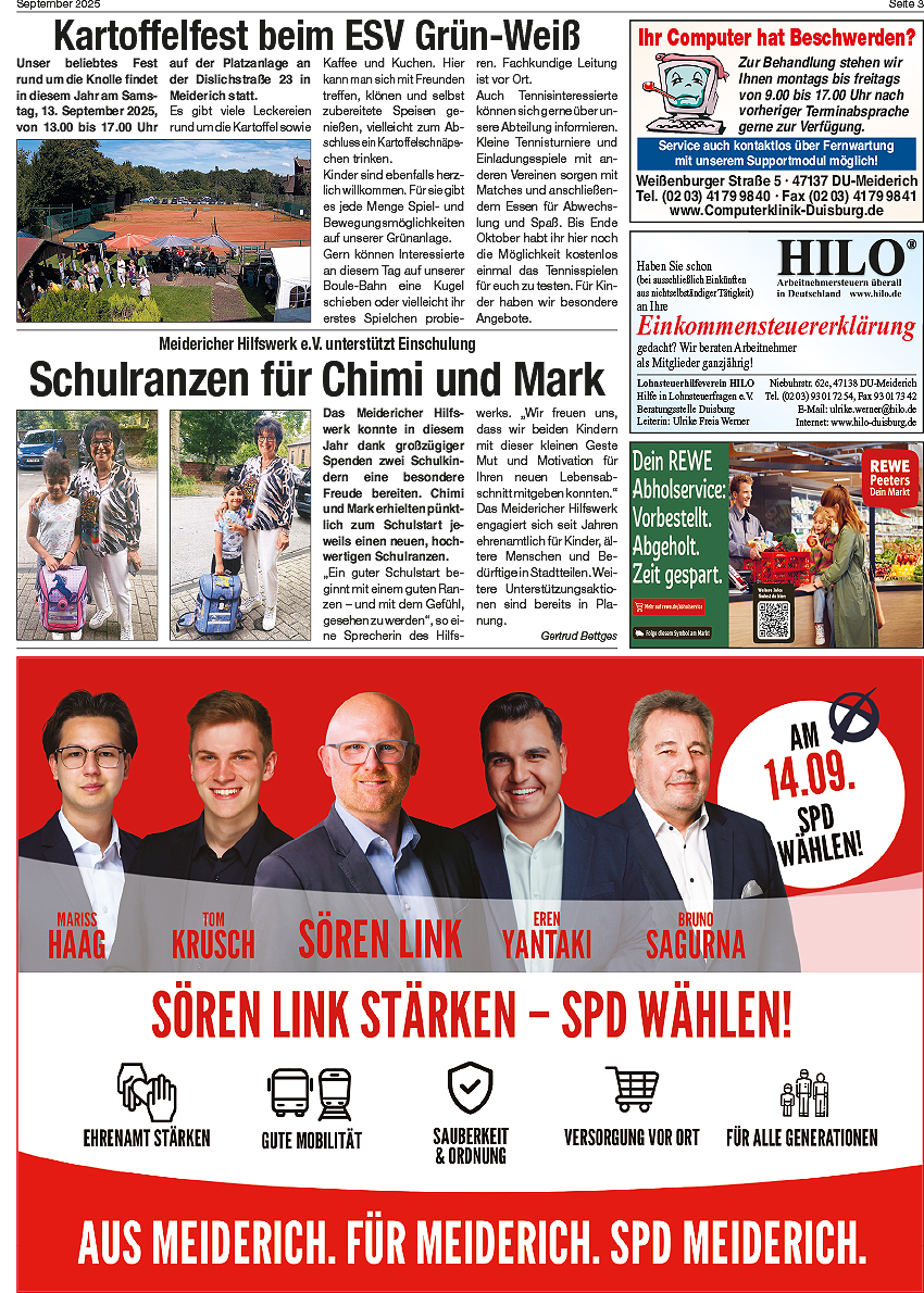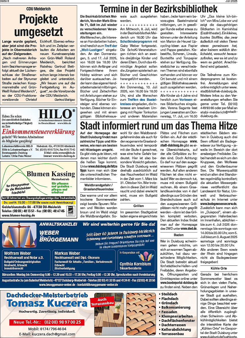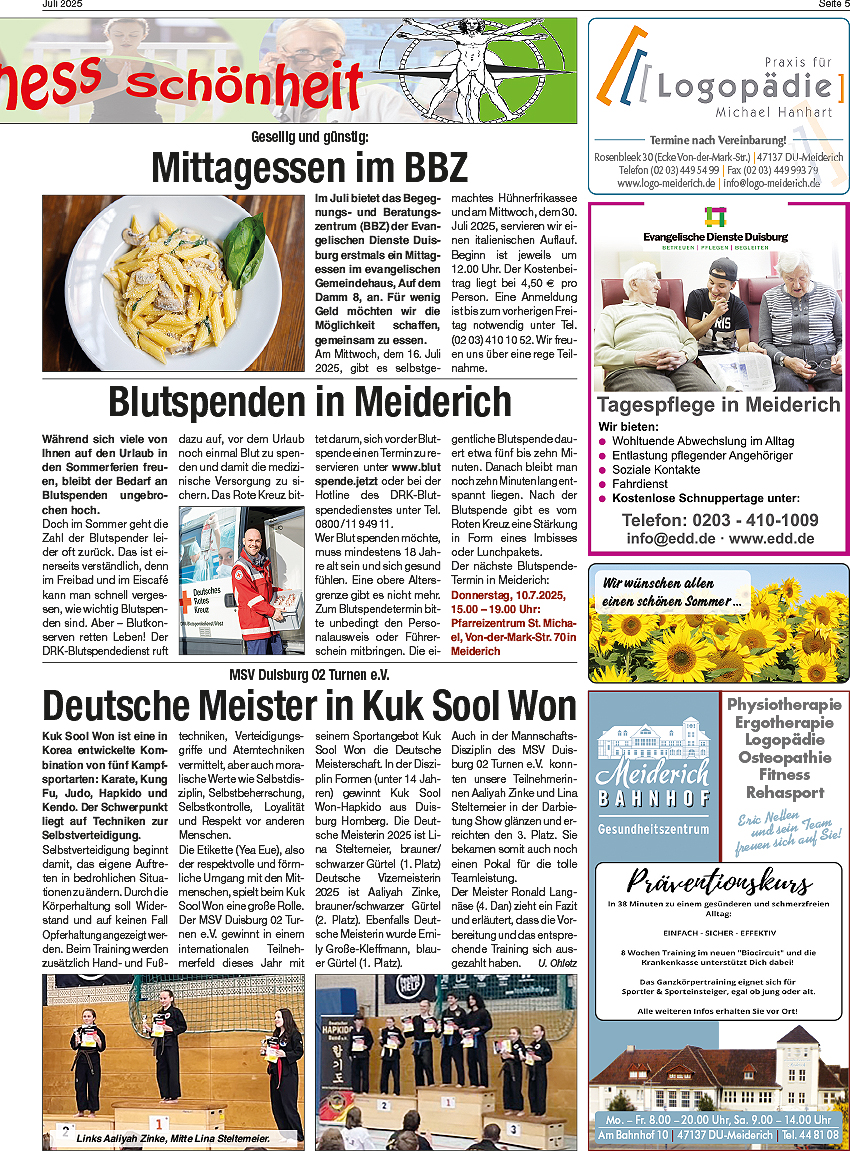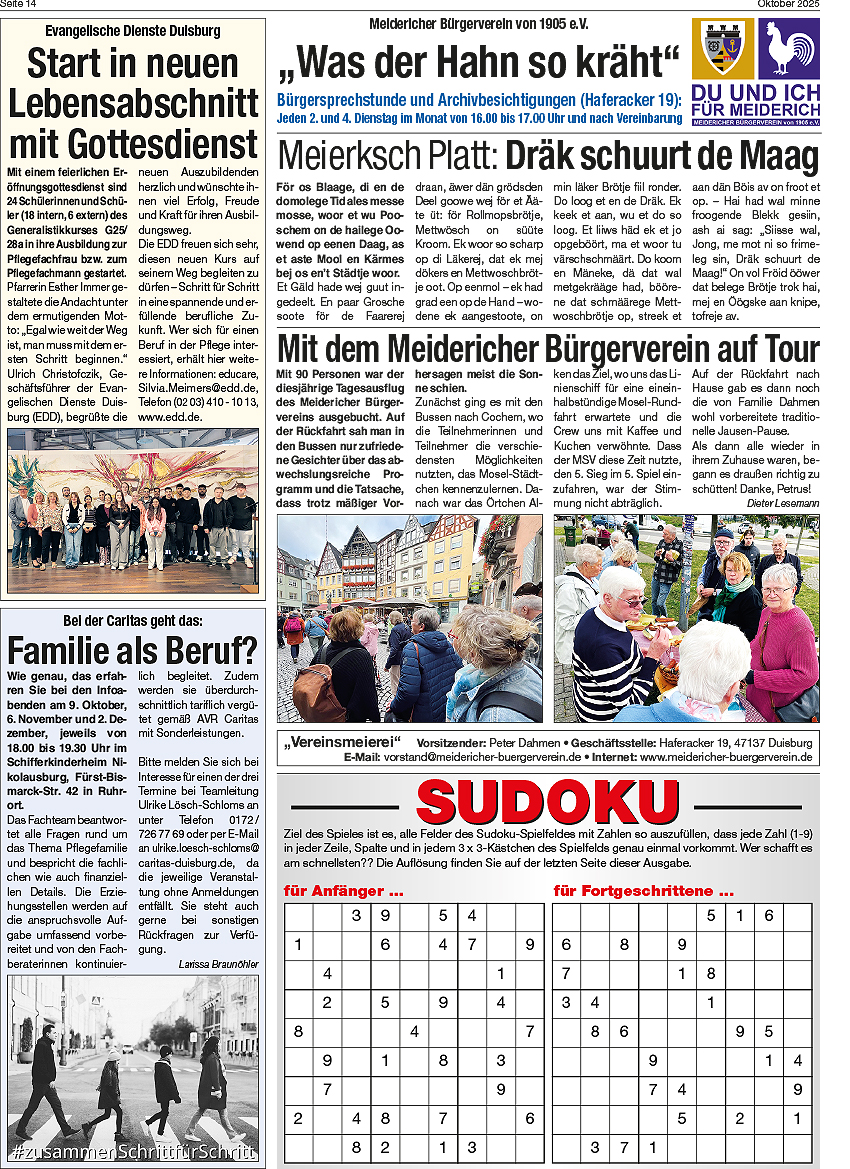 Hier jetzt auch wieder online - die aktuelle Ausgabe unserer Monatszeitung DER MEIDERICHER mit vielen Informationen, Berichten, Neuigkeiten und Nachrichten aus unserem Bezirk sowie aktuellen Angeboten unserer Geschäftsleute ... viel Spaß beim Lesen!