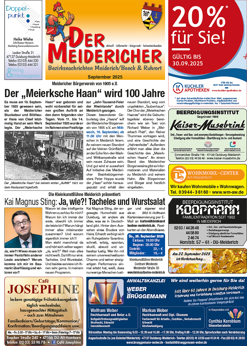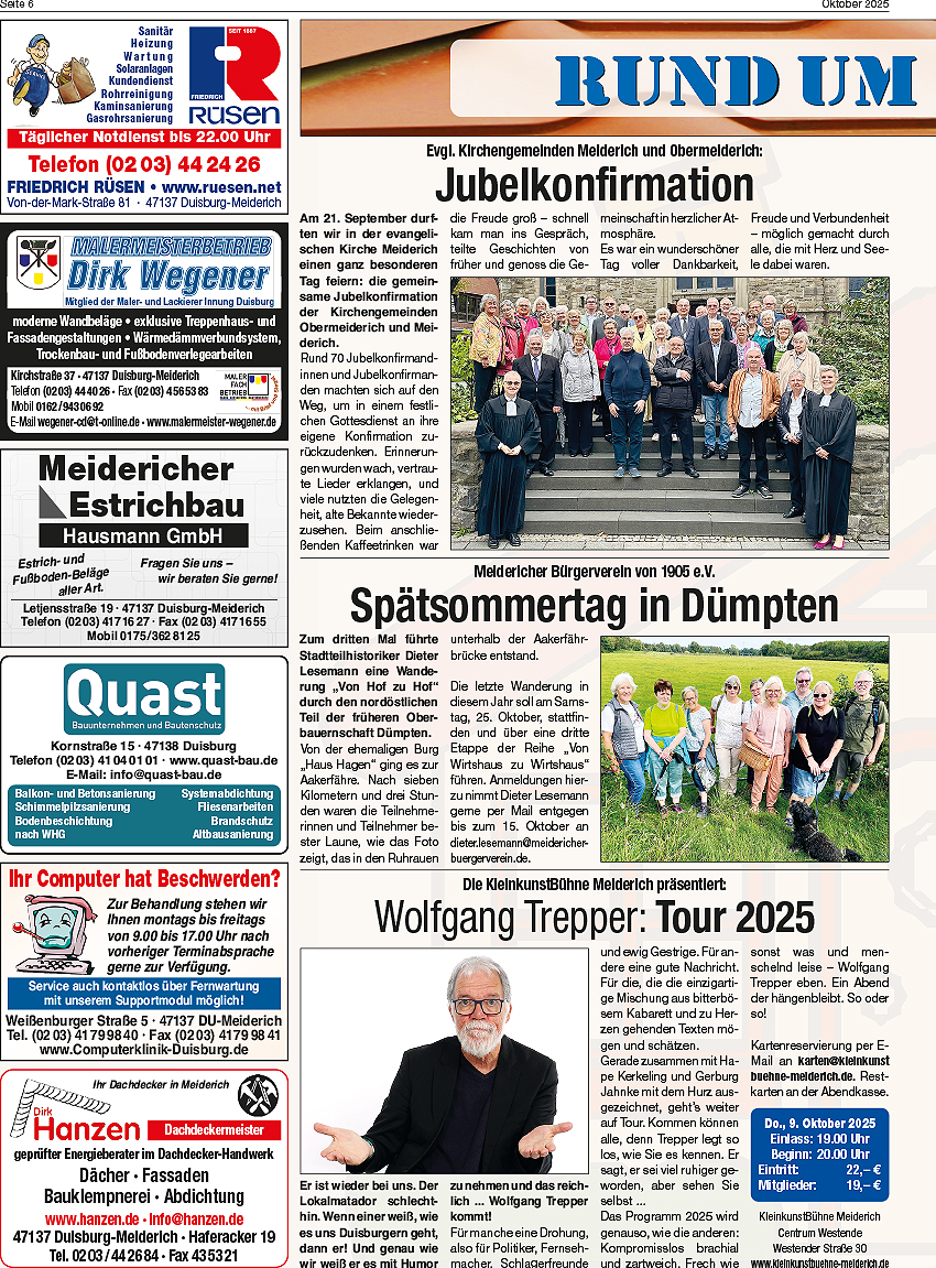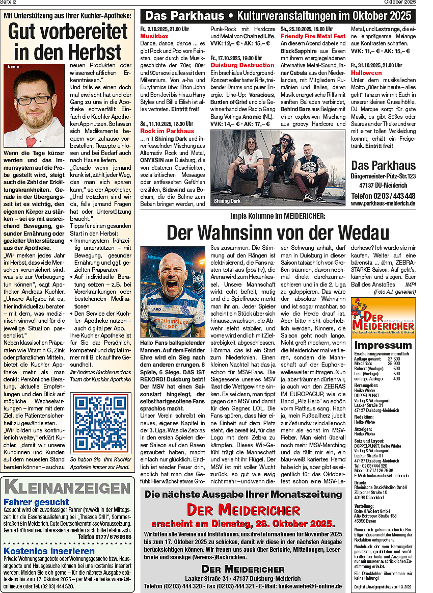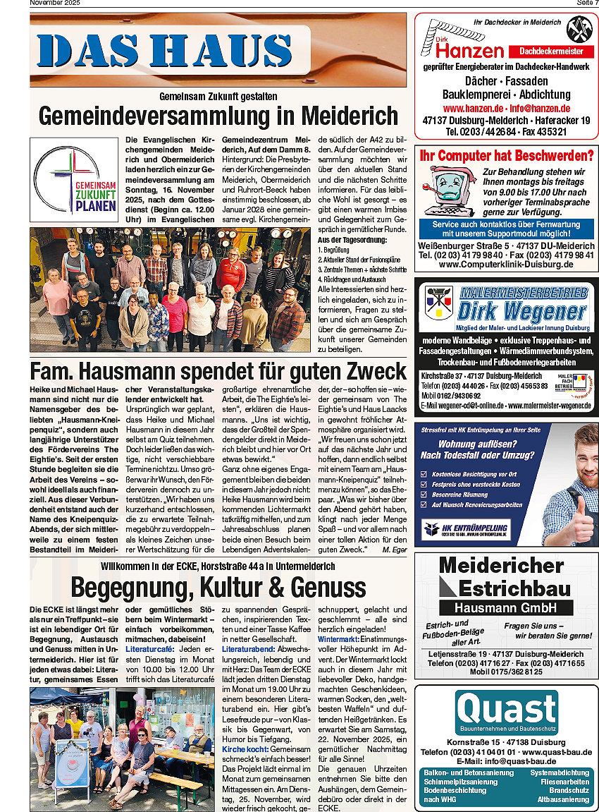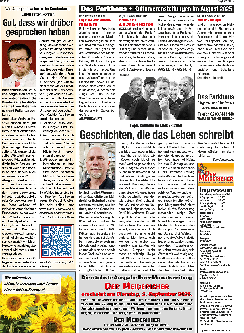 Hier jetzt auch wieder online - die aktuelle Ausgabe unserer Monatszeitung DER MEIDERICHER mit vielen Informationen, Berichten, Neuigkeiten und Nachrichten aus unserem Bezirk sowie aktuellen Angeboten unserer Geschäftsleute ... viel Spaß beim Lesen!
