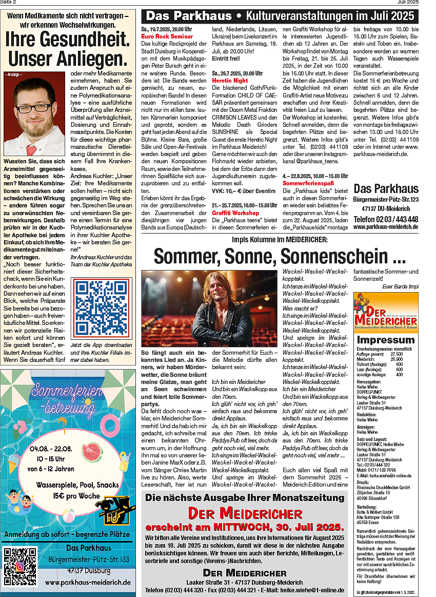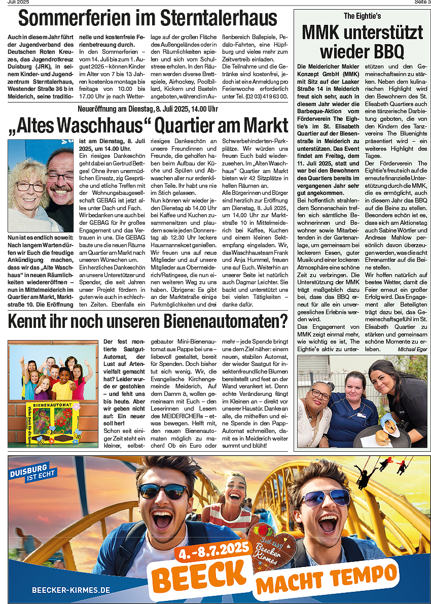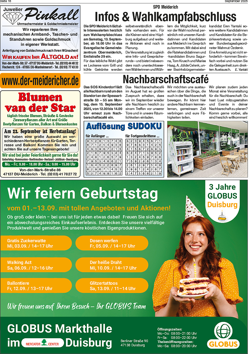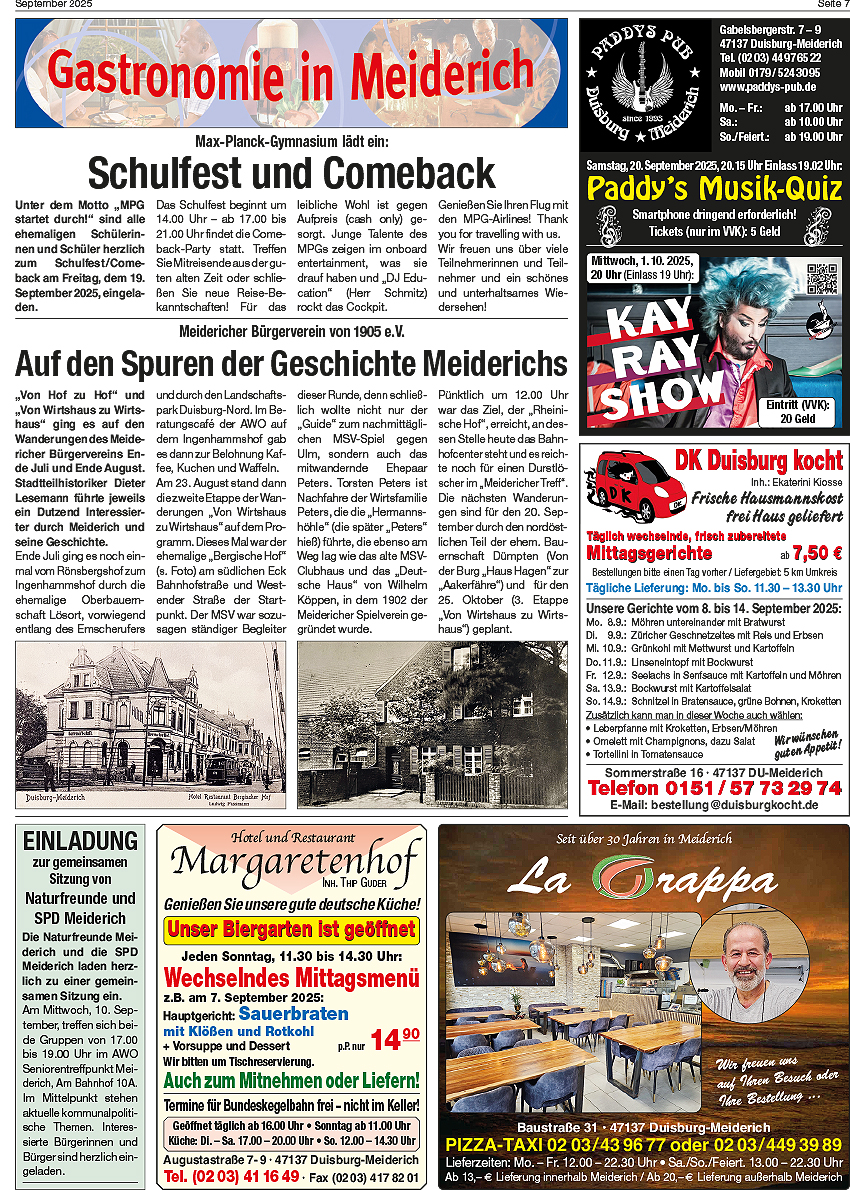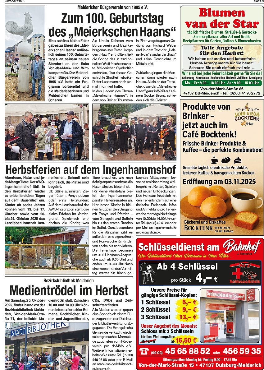 Hier jetzt auch wieder online - die aktuelle Ausgabe unserer Monatszeitung DER MEIDERICHER mit vielen Informationen, Berichten, Neuigkeiten und Nachrichten aus unserem Bezirk sowie aktuellen Angeboten unserer Geschäftsleute ... viel Spaß beim Lesen!