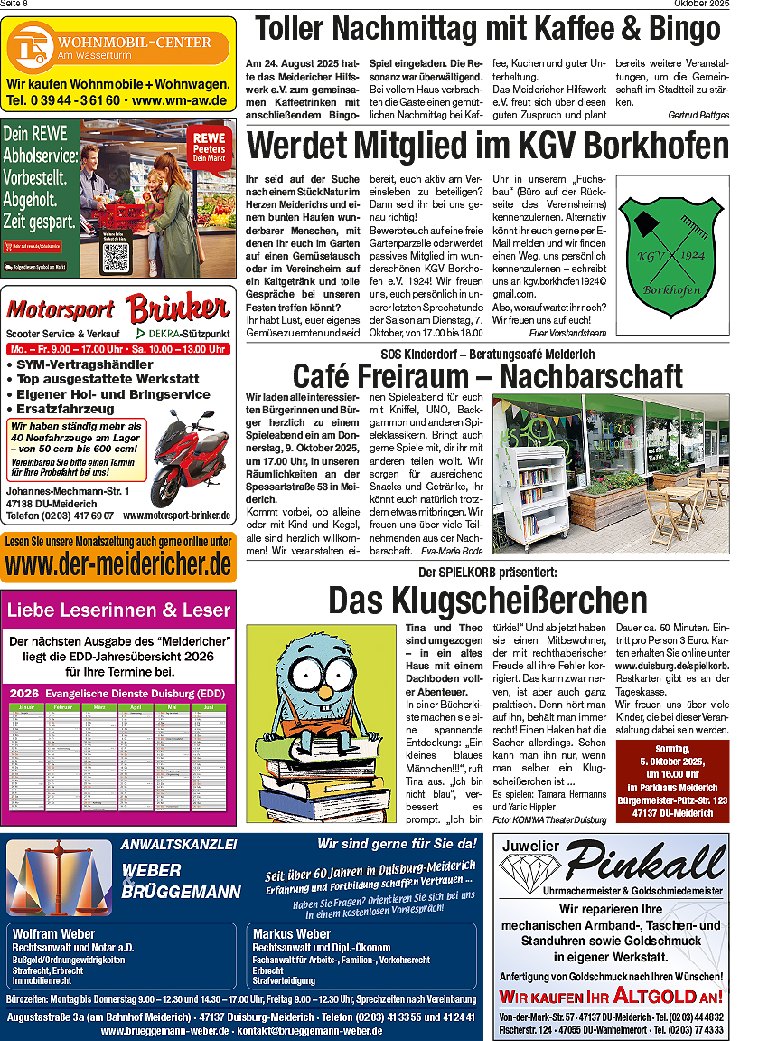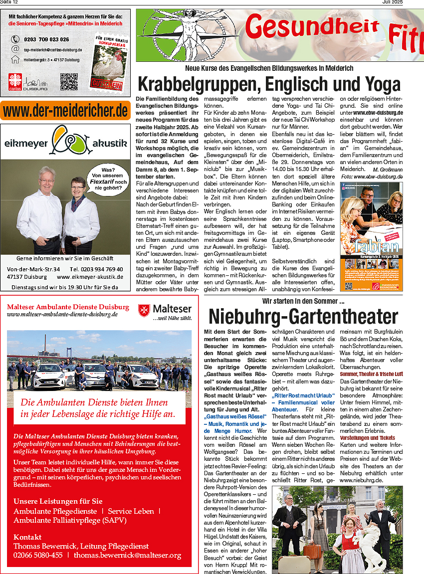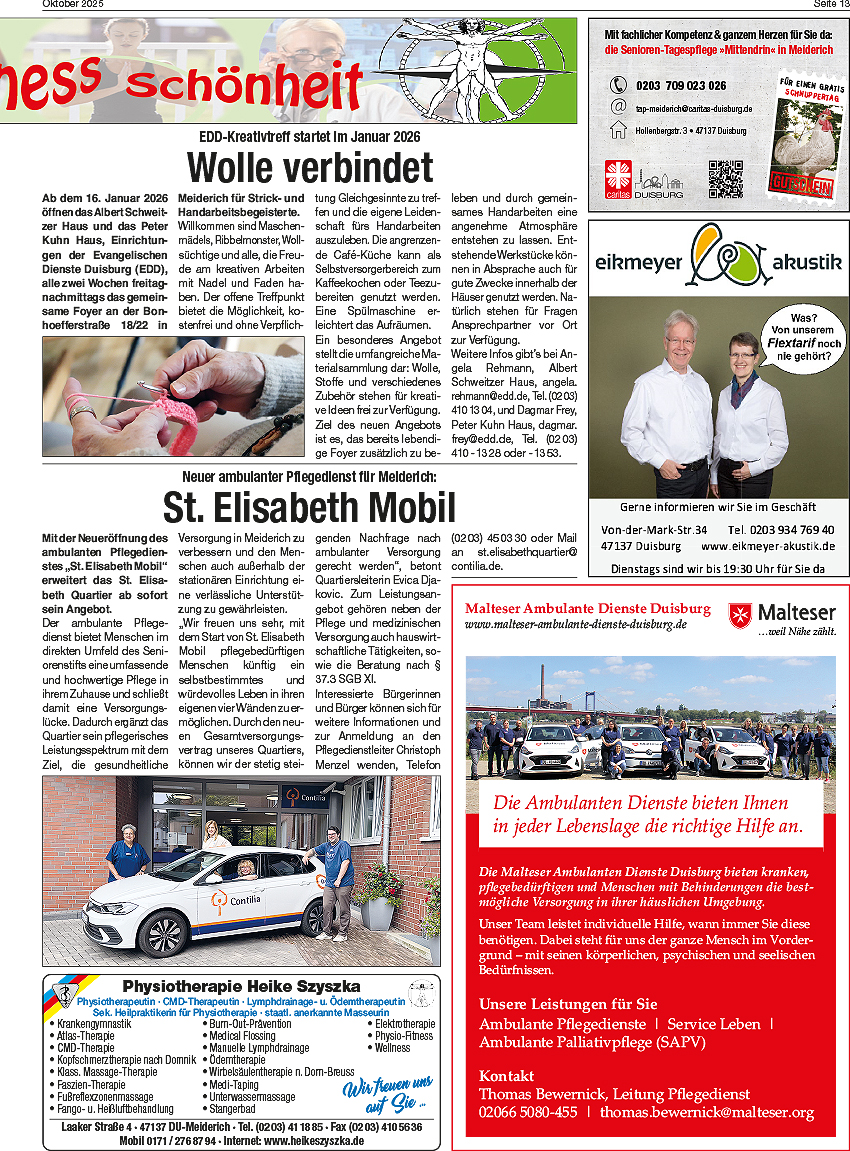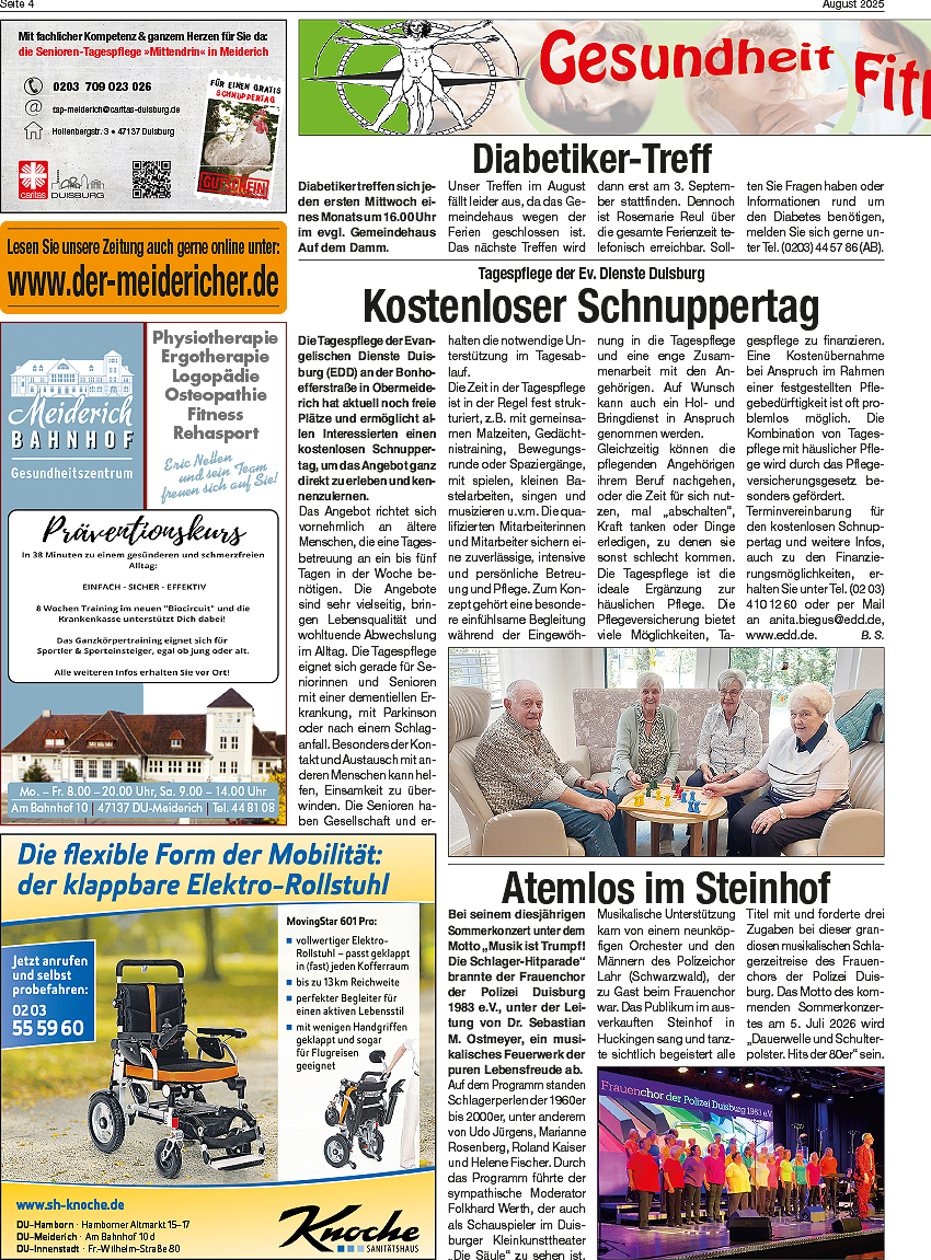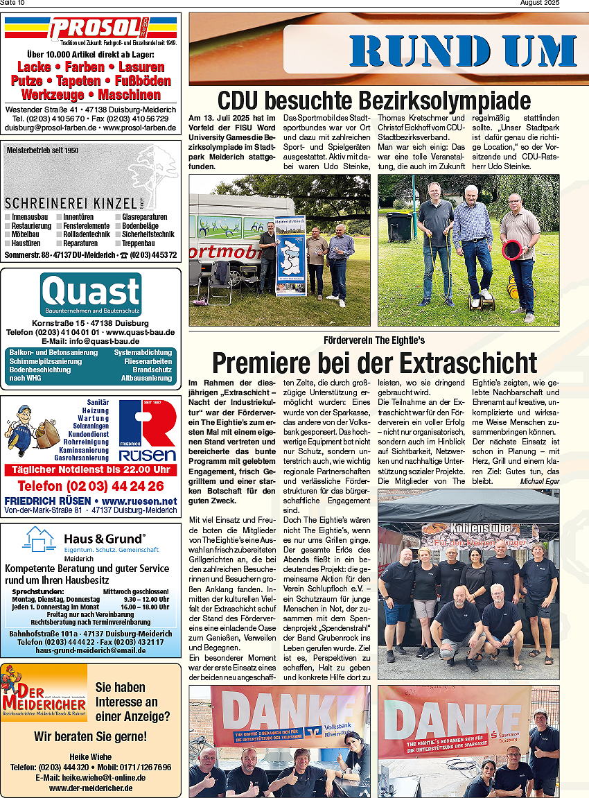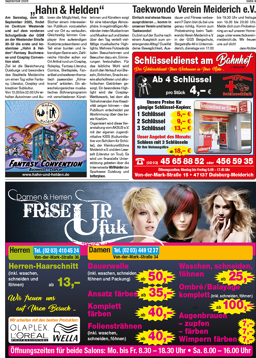 Hier jetzt auch wieder online - die aktuelle Ausgabe unserer Monatszeitung DER MEIDERICHER mit vielen Informationen, Berichten, Neuigkeiten und Nachrichten aus unserem Bezirk sowie aktuellen Angeboten unserer Geschäftsleute ... viel Spaß beim Lesen!