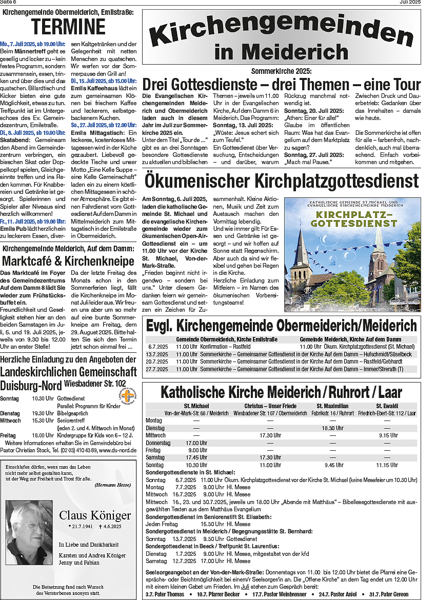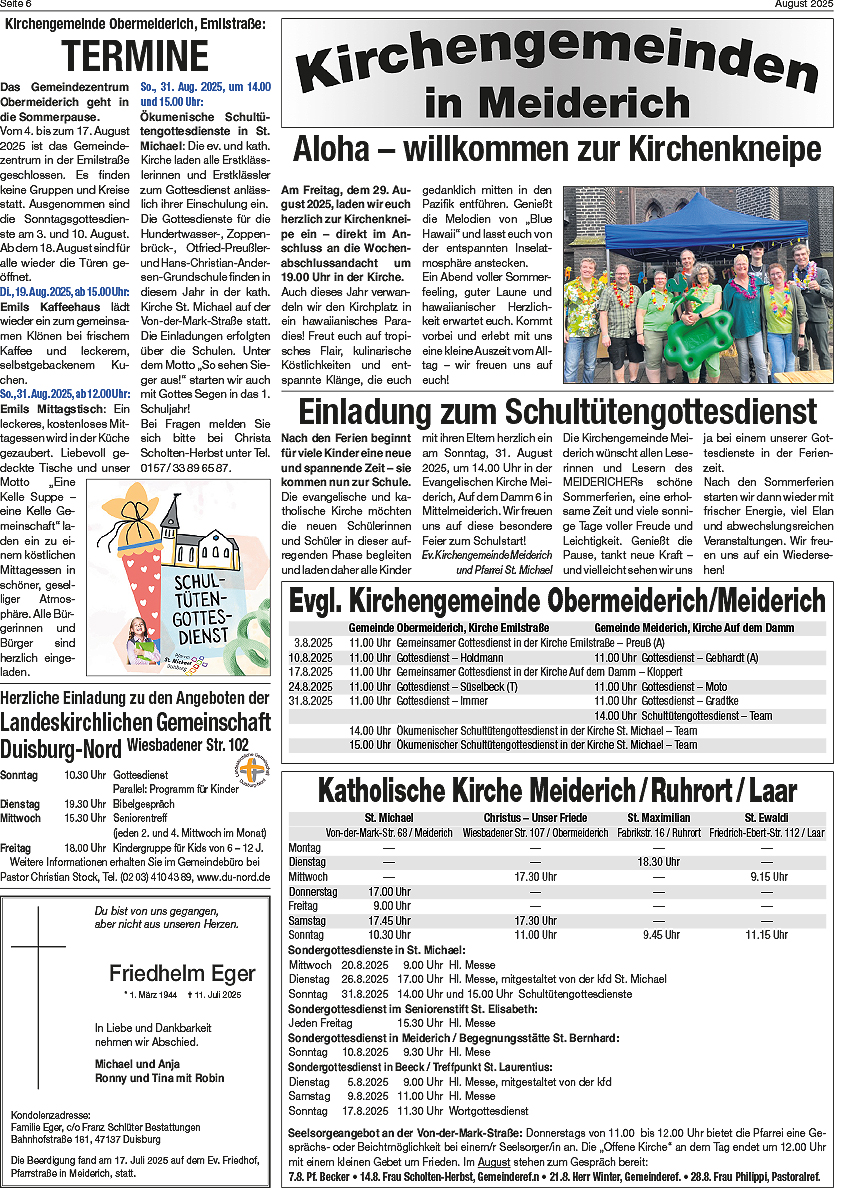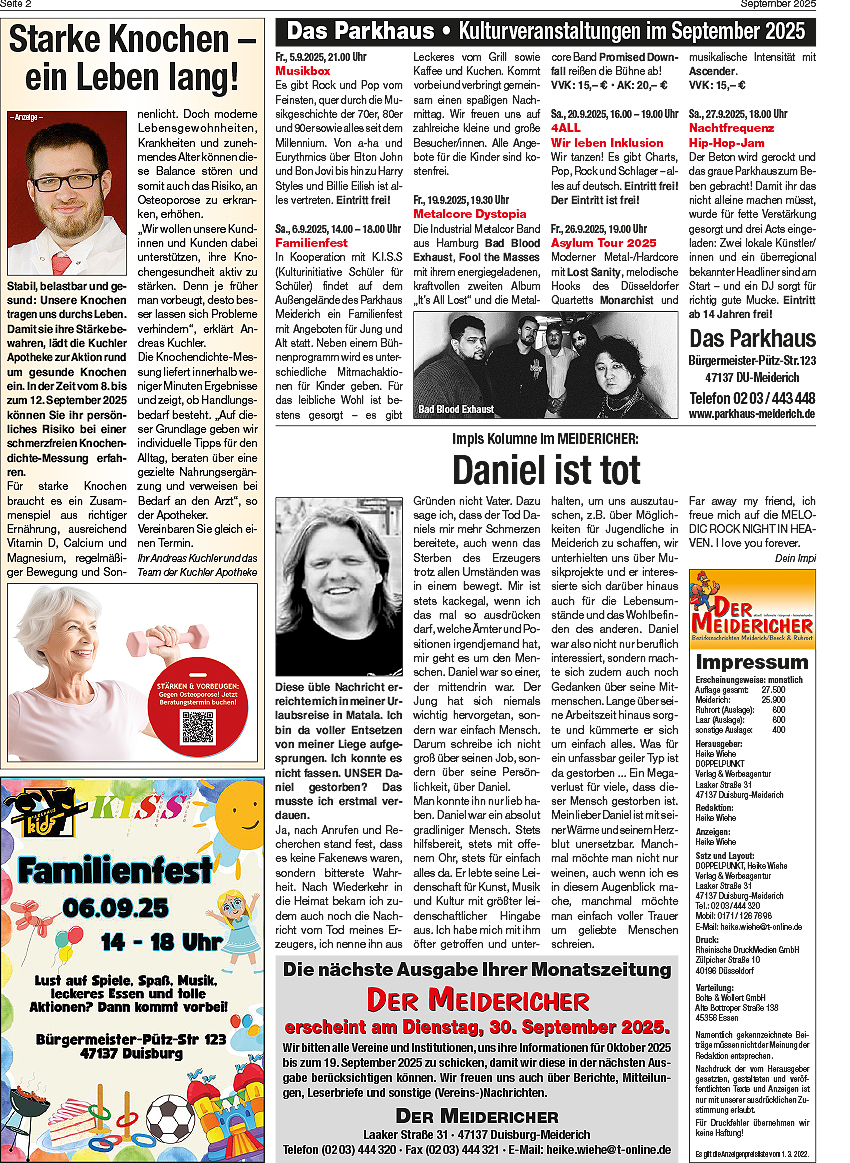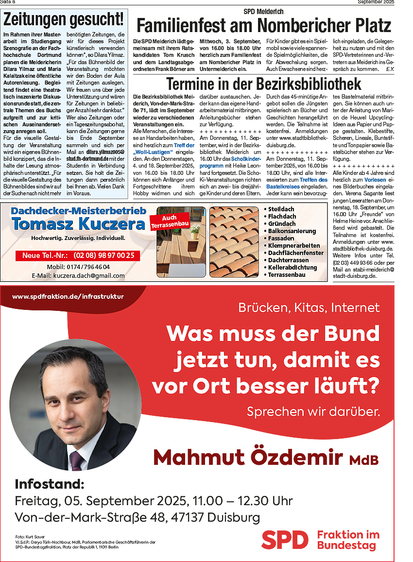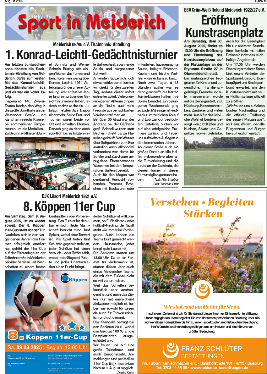 Hier jetzt auch wieder online - die aktuelle Ausgabe unserer Monatszeitung DER MEIDERICHER mit vielen Informationen, Berichten, Neuigkeiten und Nachrichten aus unserem Bezirk sowie aktuellen Angeboten unserer Geschäftsleute ... viel Spaß beim Lesen!